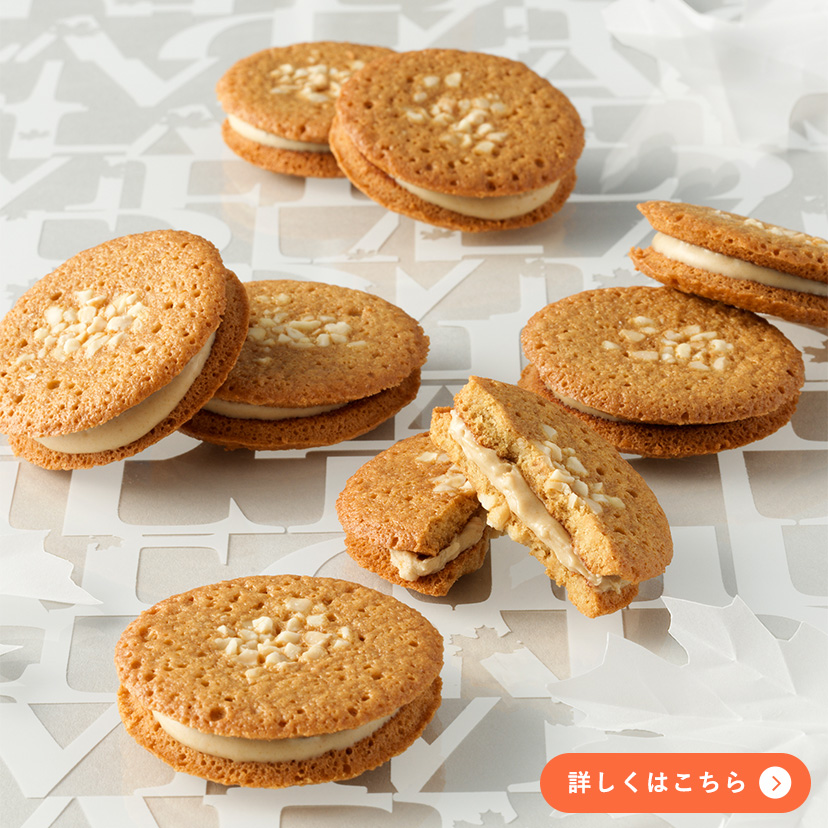 メープルシュガーとニュージーランド産生乳でつくられたグラスフェッドバターを練り込み、黄金色に焼き上げたクッキーでサンドしました。