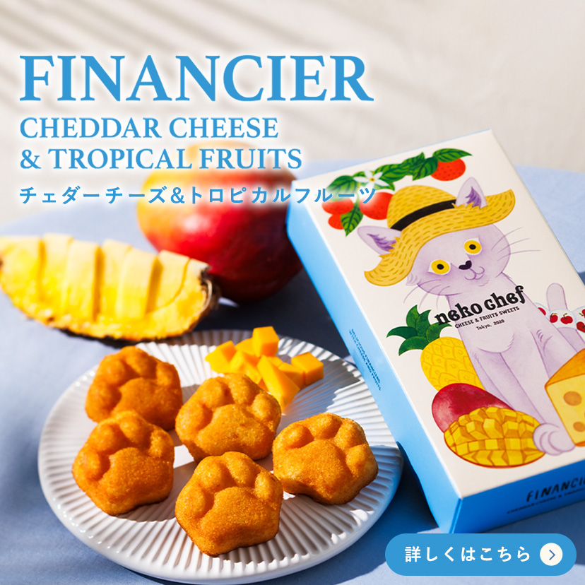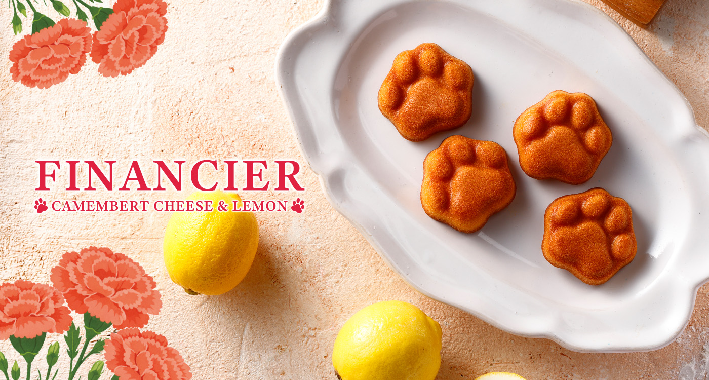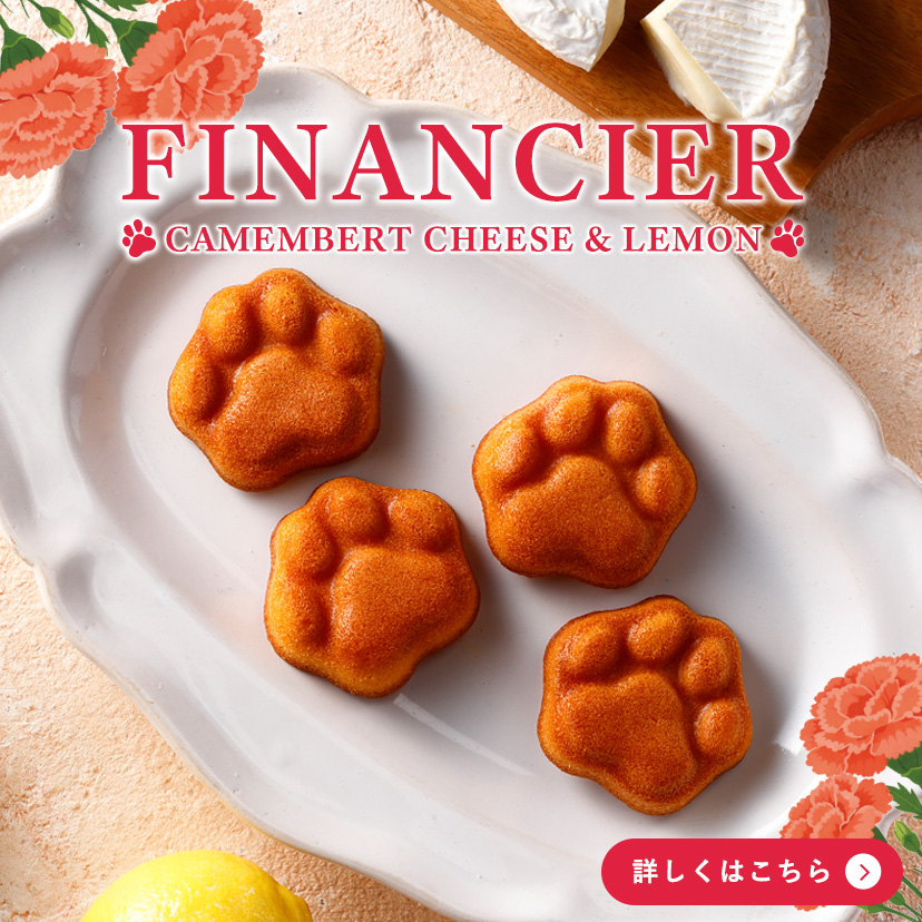 かわいいネコシェフ印の肉球型!!ネコ好きのお母さんに贈りたい、心温まるフィナンシェです。