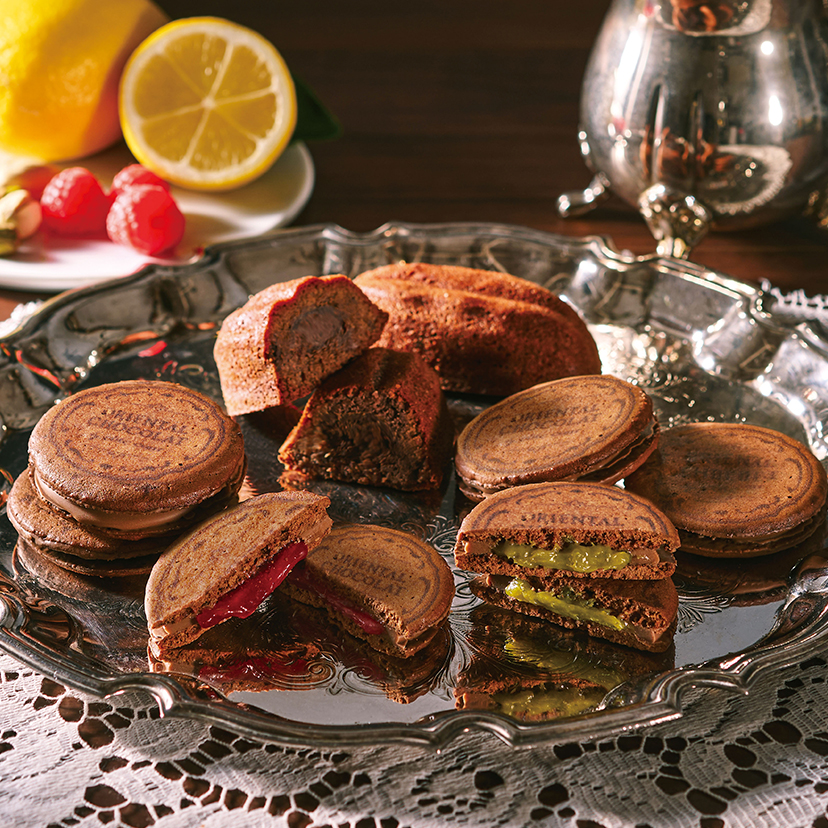 「オリエンタルショコラサンド」の「ラズベリー」と「ピスタチオ」2種の食べ比べができるアソートや、「オリエンタルショコラサンド各2種」と「マドレーヌ」の3つの味がたのしめる贅沢な詰め合わせをご用意しています。