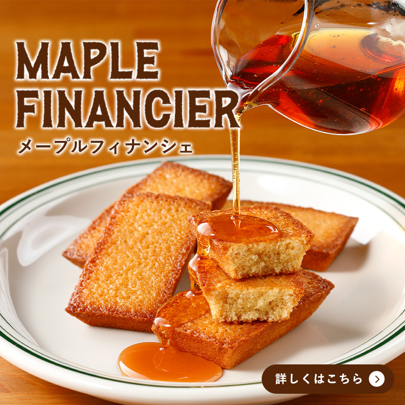 ひとくち食べれば、リッチで甘いメープルの香り。メープルマニア自慢のフィナンシェです。