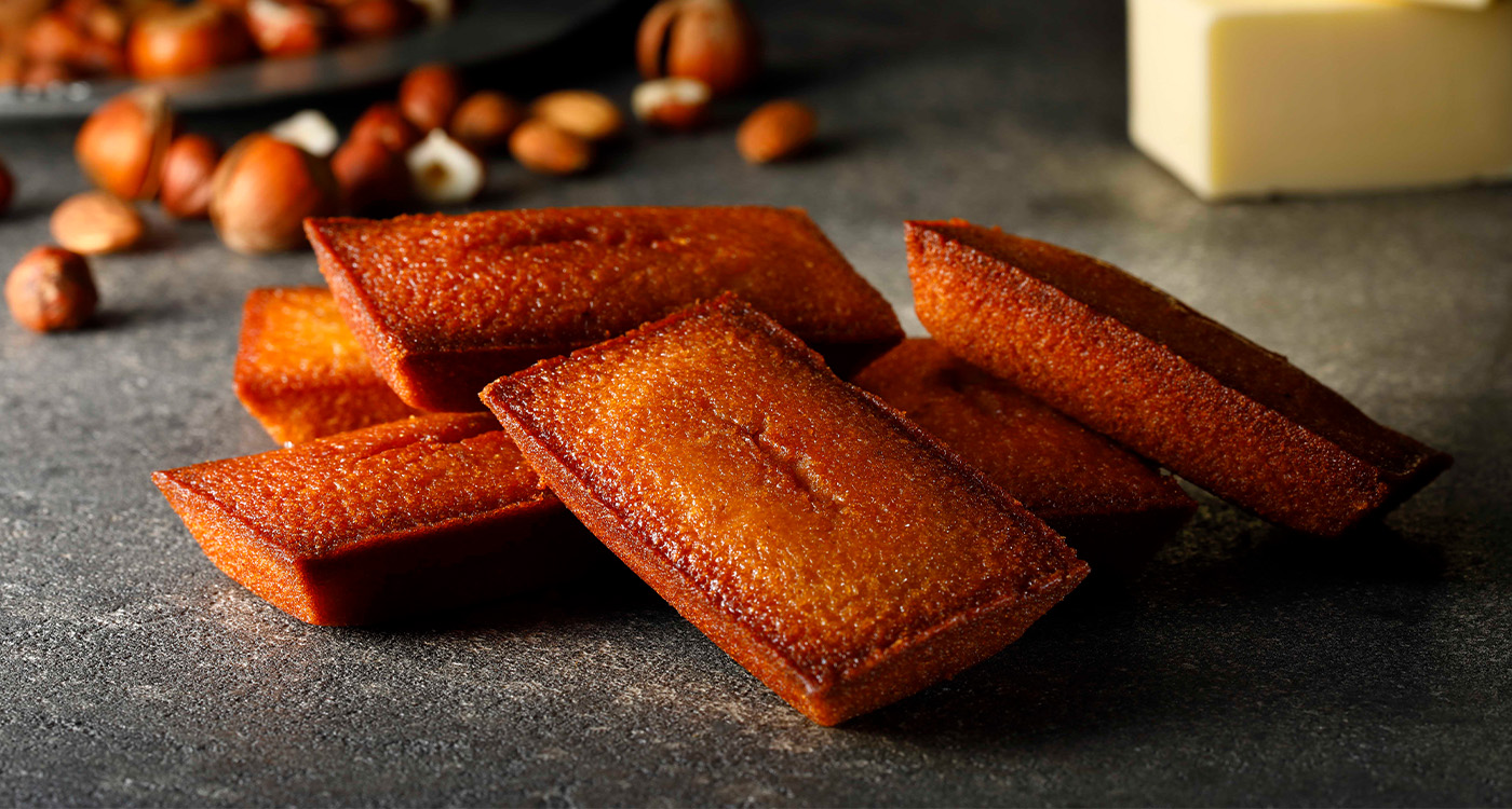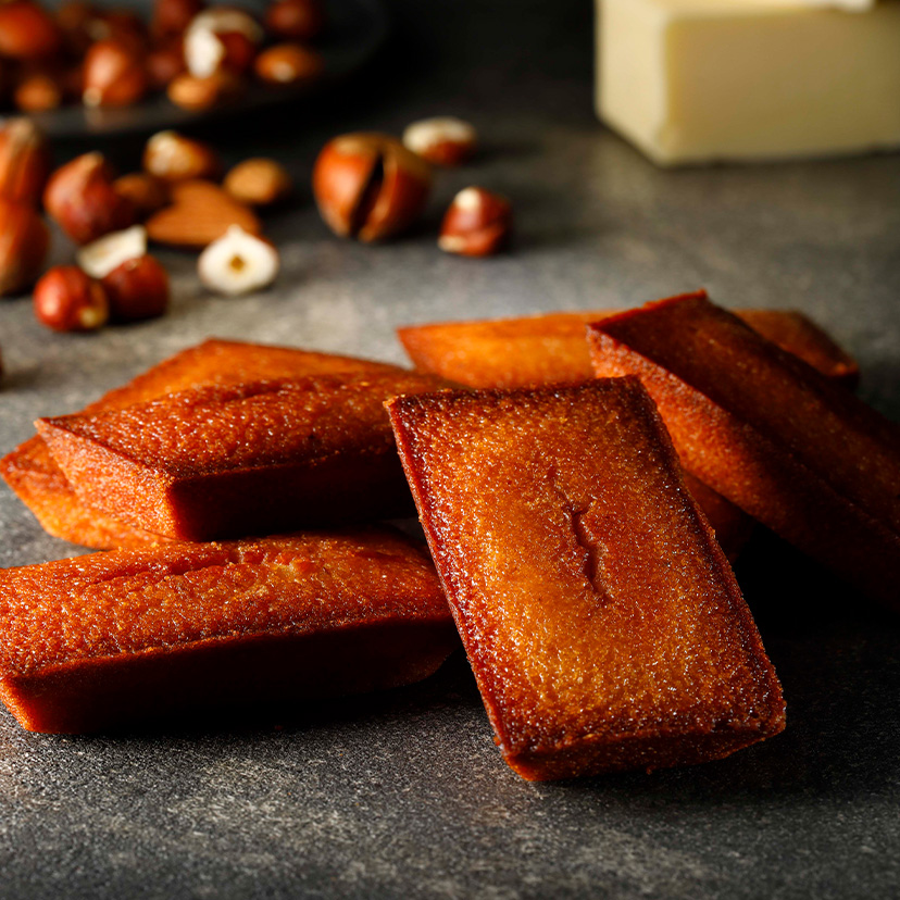 ナッツは甘みと深みが出るようヘーゼルナッツをアーモンドに合わせてまろやかな香ばしさに仕立てたフィナンシェです。 -