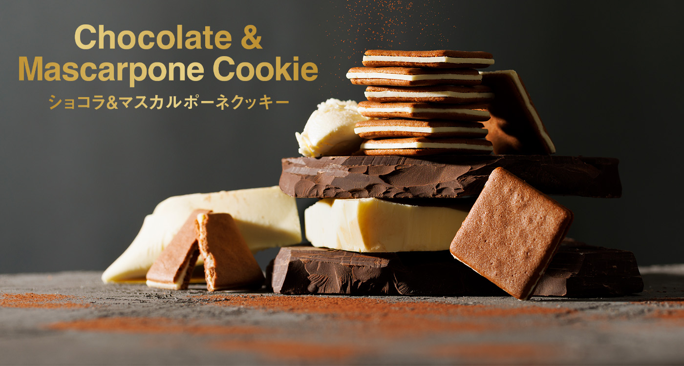 こだわりのエスプレッソを効かせたラングドシャに、ミルクの甘さを感じるマスカルポーネチーズのチョコレート (※)をサンド。苦さの奥に甘さを感じる、本物のティラミスを焼き上げたような大人も子供も楽しめるクッキーに仕上げました。