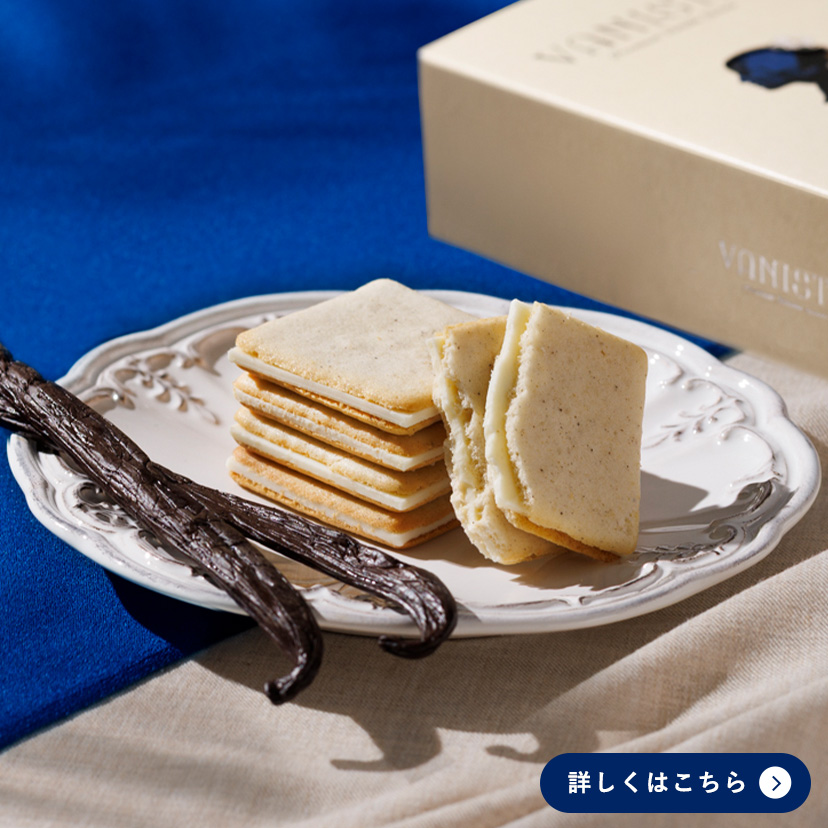 ひと口かじれば軽やかにほどけ、口の中いっぱいに広がるバニラの香りは余韻まで楽しめるVANISTAの看板商品です。